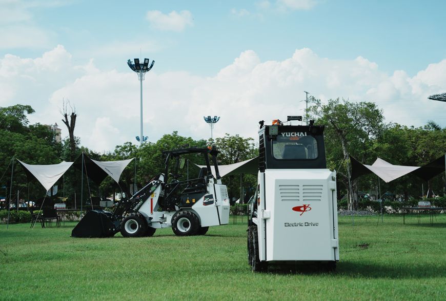 The Yuchai S35Max electric skid steer loader features with global firstwheel side motor driving and AUTo HOLD technology, ensuring stability, reliability,and safety. lts compact design and excellent maneuverability make it ideal forextremely narrow spaces, easily navigating corridors, aisles, alleys, and low-heightareas. lt can be equipped with various attachments for functions such as loading,sweeping, and crushing.The S35Max long-endurance version offers fast charging in just 1 hour, allowingfor 9-11 hours of continuous operation.